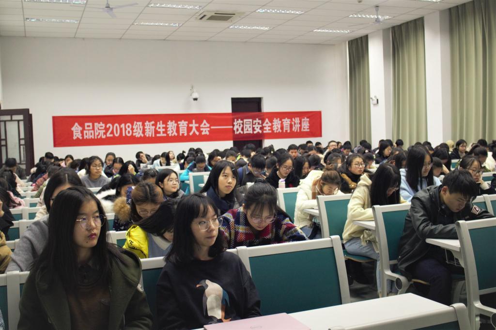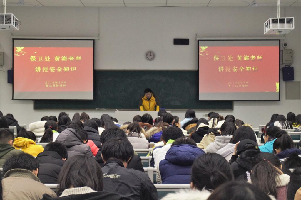 2018年12月5日,365best体育亚洲官网在主楼134举办“食品院2018级新生校园安全教育”讲座。本次讲座由保卫处黄海老师主讲,食品院2018级182名大一新生参加此次讲座。主要就校内安全现状、历年案件分析及安全注意事项三方面进行讲解。