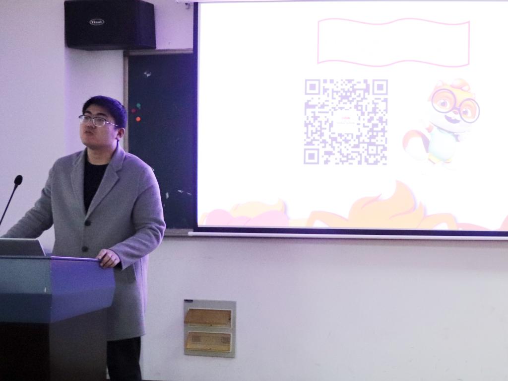 随后谢婷婷对于三只松鼠有限公司的企业文化以及竞赛主题、注意事项进行介绍。通过一系列产品展示,为参赛队员提供创新思路。最后详细介绍了本次大赛的理念“更新 更鲜 更健康”,使大家更加明确了大赛主题和方向。最后,在答疑竞答环节,同学们针对产品创意设计、专业技术难点、竞赛主旨等方向积极提问。