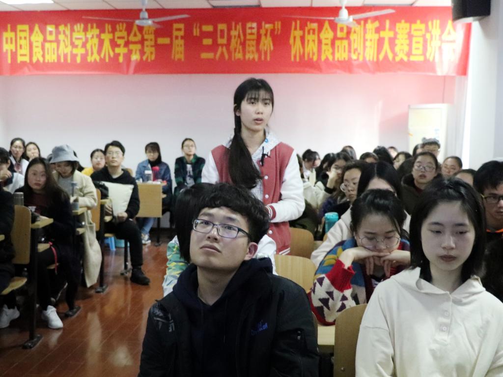 通过此次校园宣讲会,同学们对2019年“三只松鼠杯”休闲食品创新大赛有了更为深刻、清楚的认识,增强了同学们的创新意识。