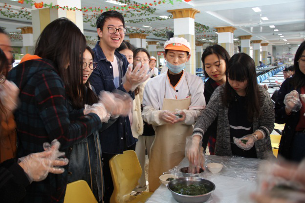 此次活动主要分为两个部分,学生制作青团和1000个青团免费发放。活动现场,好朋友餐饮管理有限公司的面点师傅利用青团制作原料制作了一些精致的面点,供大家参观。面点师傅向大家展示了制作青团的全过程,并手把手指导参与活动的师生们包青团,大家积极参与,兴趣高涨,现场制作氛围融洽。制作完成后,现场为学生们免费提供1000个青团,广受师生欢迎。