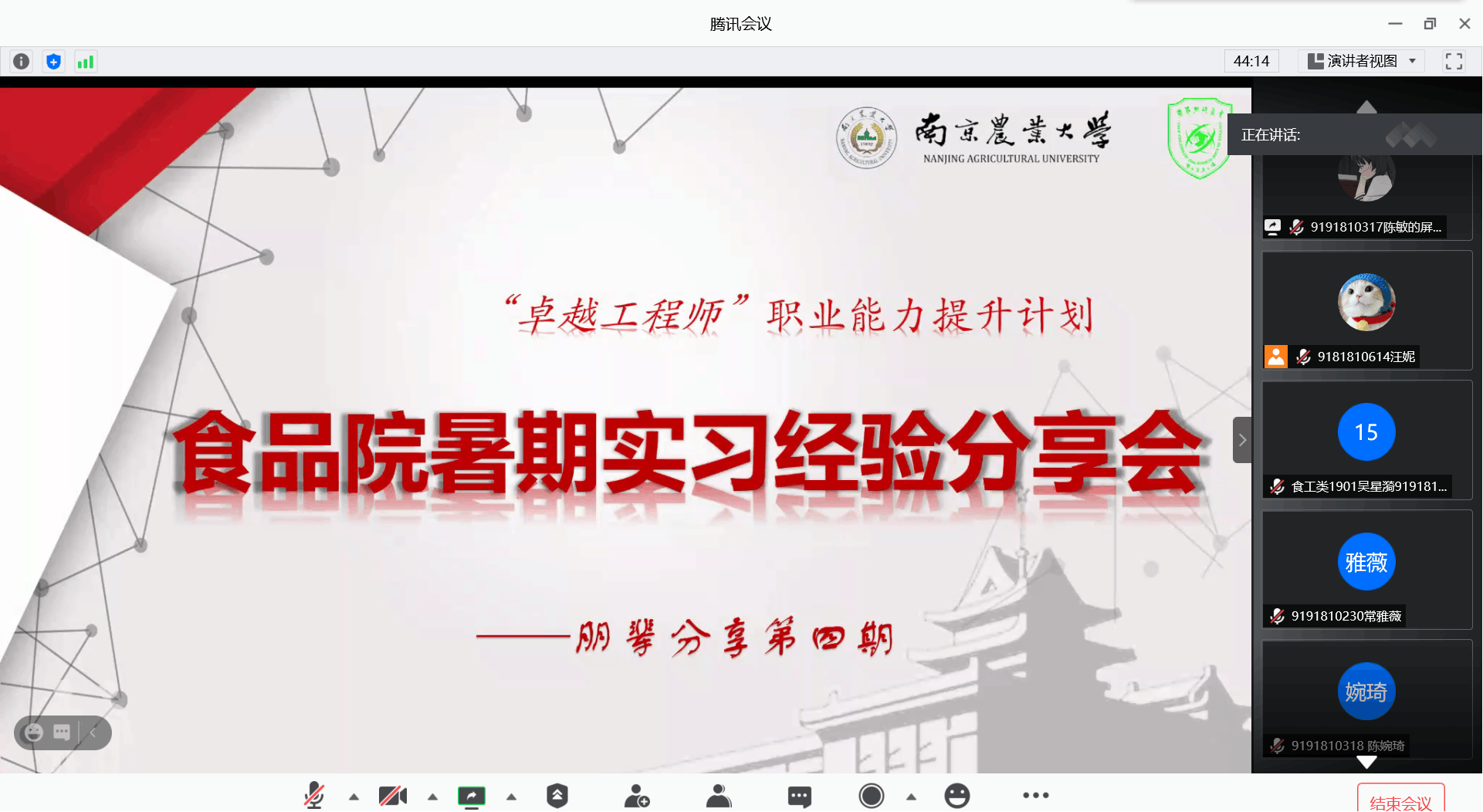 9月29日晚,“卓越工程师”职业能力提升计划朋辈分享第四期——365best体育亚洲官网暑期实习分享会通过线上腾讯会议举行。来自食工卓越171班的付雨萌牛晓康、高倩妮三位同学受邀讲述了暑期实习故事,分享了实习心得,为学弟学妹们未来的实习规划提供了宝贵的经验。