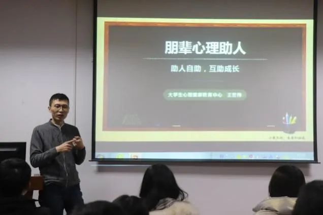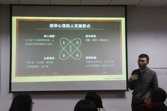 王老师通过四个方面(助人前提、基本态度、主要角色、时刻审视)深入浅出,结合生活中的例子为大家讲解了朋辈心理助人的实施要点,为心理委员之后的工作开展提供了理论和实践基础。