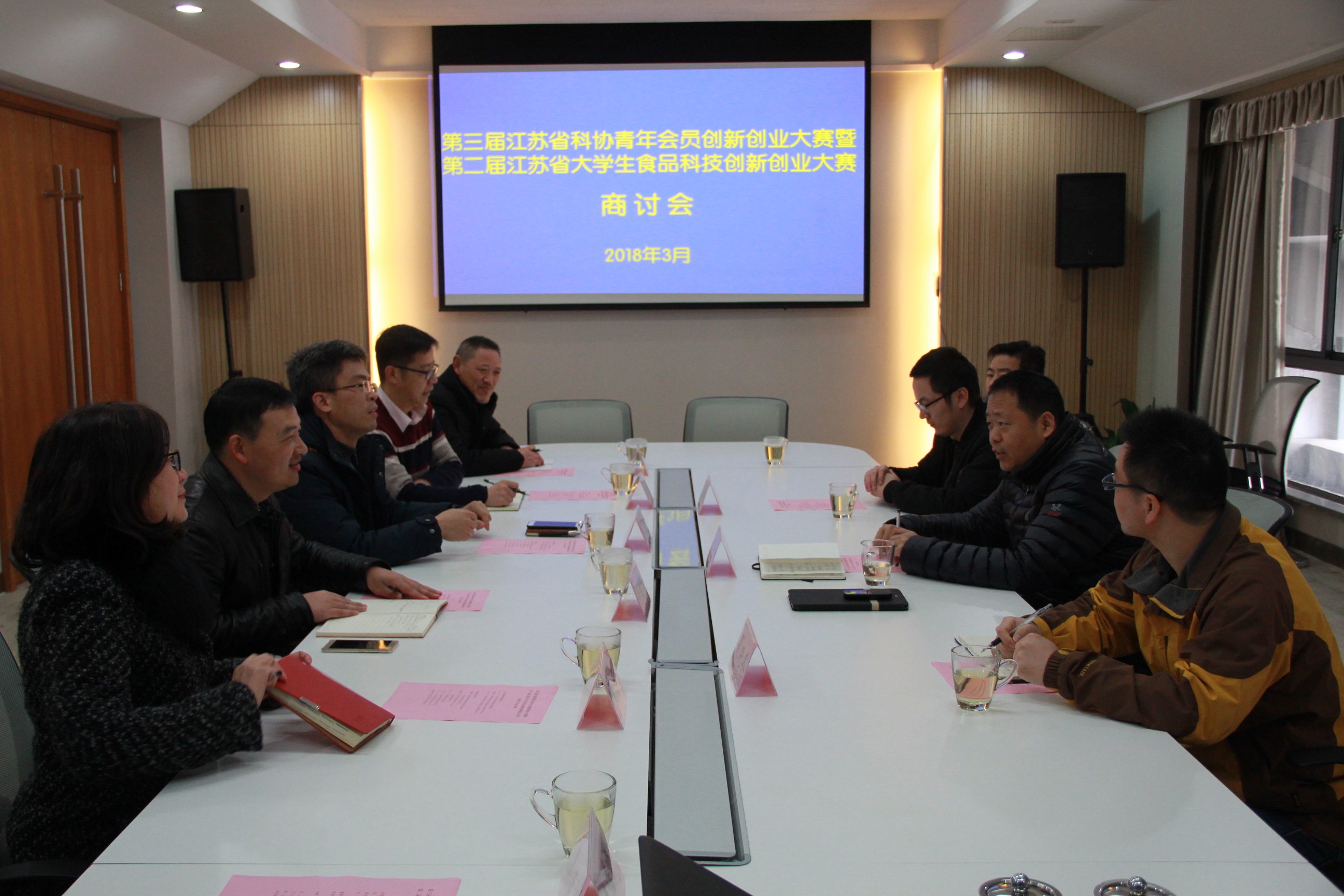 3月21日上午,江苏省科协青年会员创新创业大赛(大学生食品科学领域)商讨会在365best官网图书馆1902共享空间召开。江苏省科技干部进修学院副院长(主持工作)、江苏省科协青年会员创新创业大赛组委会办公室常务副主任张杰,365best体育亚洲官网科学研究院副院长、校科协副秘书长俞建飞,365best体育亚洲官网党委书记夏镇波、副书记丁广龙等出席会议。