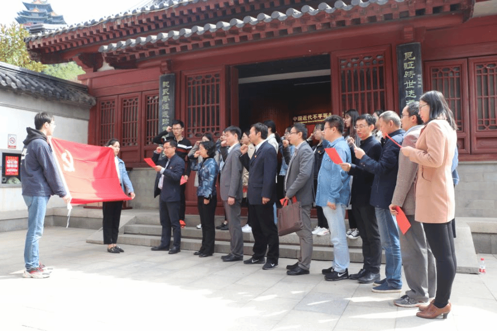 9月27日上午,根据365best体育亚洲官网党委“不忘初心、牢记使命”主题教育安排,学院党委书记朱筱玉,院党委副书记、院长徐幸莲,副院长李春保、辛志宏、金鹏等院领导班子成员,带领学院各教师和学生党支部记30余人,来到静海寺《南京条约》史料陈列馆,开展了“铭记历史守初心,爱国爱党担使命”主题党日活动。