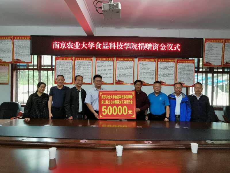 调研结束后,还举行了捐赠仪式,我院向兰山村捐赠5万元用于蕨菜加工厂建设。