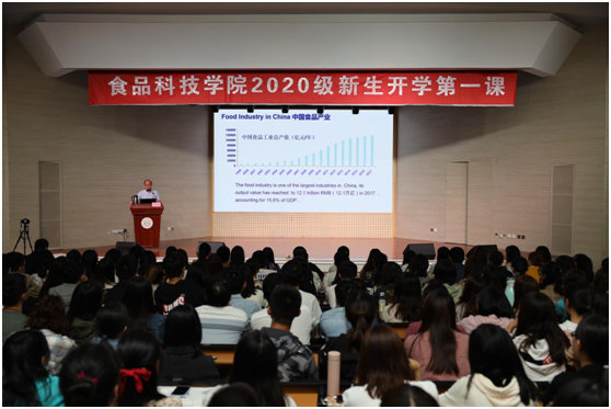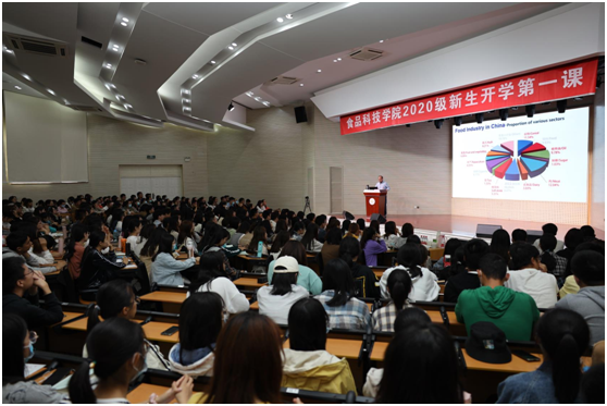 10月13日14:00,365best体育亚洲官网在大学生活动中心举行2020级新生开学第一课,报告由原365best体育亚洲官网校长、中国畜产品加工研究会会长、国家肉品质量安全控制工程技术研究中心首席科学家周光宏教授主讲。食品科技学院党委书记孙健、副书记邵士昌、本研辅导员、全体2020级本科新生与研究新生近400人参加了本次报告。报告由孙健主持。