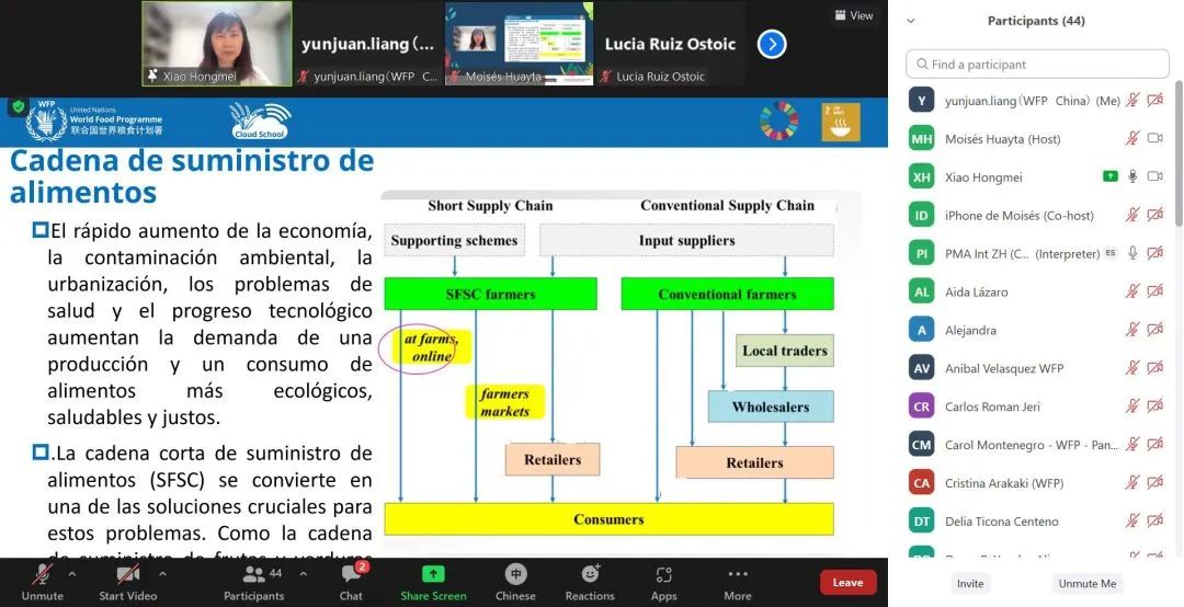 6月9日至10日,世界粮食计划署农村发展卓越中心与秘鲁办公室举办了“学习中国经验:秘鲁生鲜农产品供应链”系列研讨会。会议旨在通过分享中国的知识和经验,为秘鲁政府官员以及阿亚库乔地区的小农和生产商提供交流机会,并提高他们在生鲜农产品食品安全方面的能力。来自中国、秘鲁的专家和政府官员,学术机构,相关国际组织,以及秘鲁当地的小农户参与了研讨会。