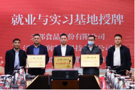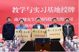 狄传华、李伟为天邦食品股份有限公司、江苏康润农业科技有限公司、苏州市味知香食品股份有限公司授予“就业与实习基地”牌匾。辛志宏、金鹏为南京健友生化制药股份有限公司、江苏新申奥生物科技有限公司、苏州市味知香食品股份有限公司授予“教学与实习基地”牌匾。