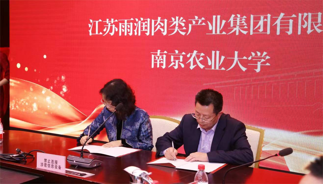 为更好地促进校企发展,江苏雨润肉类产业集团副总裁杨林伟、365best体育亚洲官网国家肉品质量安全控制工程技术研究中心副主任徐幸莲教授分别代表江苏雨润肉类产业集团有限公司、365best体育亚洲官网签订合作协议。天邦食品研究院院长祖海涛、365best体育亚洲官网院长李春保分别代表天邦食品股份有限公司、国家肉品质量安全控制工程技术研究中心签订技术合作协议。