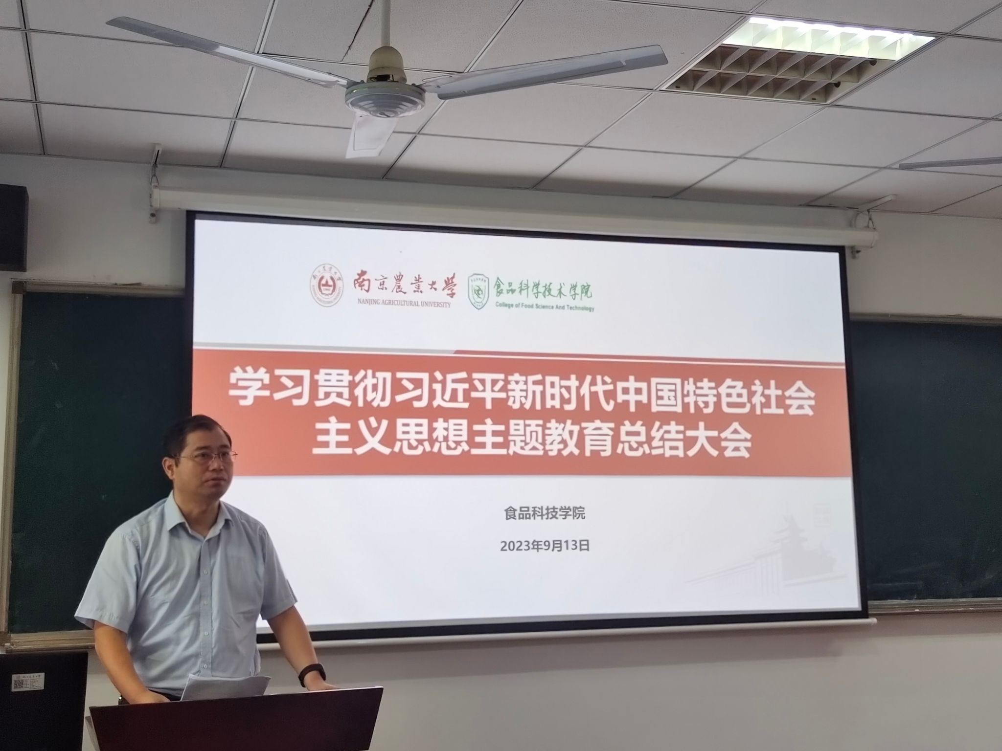 孙健做了“聚焦“四个提升”推进主题教育落地见效”的总结报告,他指出,主题教育启动以来,学院党委深入贯彻落实学校党委工作部署,365best体育亚洲官网党委牢牢把握“学思想、强党性、重实践、建新功”的总要求,细照笃行,提升运用党的创新理论解决改革发展难题的能力与水平,聚焦深入学习贯彻习近平新时代中国特色社会主义思想这一主题,坚持问题导向,结合立德树人中心任务和促进食品学科高质量发展需求破解发展瓶颈,深入开展解剖式调研,推动学院高质量发展,把主题教育学习成效转化为做好各项工作的强大动力。着力抓好动员部署、理论学习、调查研究、事业发展等工作,推进主题教育落地见效。4个月来,学院开展主题教育专题读书班14次,组织师生党员赴淮安今世缘集团、江北新村、高淳、横梁街道、淮安周恩来纪念馆等地开展主题党日活动10余次,学院党委特别在毕业季开展了“增智学思想,荣校话奋进”主题党日活动。书记带领班子全体成员为全体师生党员上党课,和毕业生一起包饺子、吃饺子,并请有50年党龄的老党员为毕业生戴党徽、和全体毕业生一起重温入党誓词等环节来对毕业生进行荣校爱校教育,进一步加强学院党委立德树人的根本任务。学院领导班子成员深入一线开展调查研究,与学院师生谈心谈话,推进“我为师生办实事”,梳理解决各项问题18个,推动学院各项事业更高质量发展。
