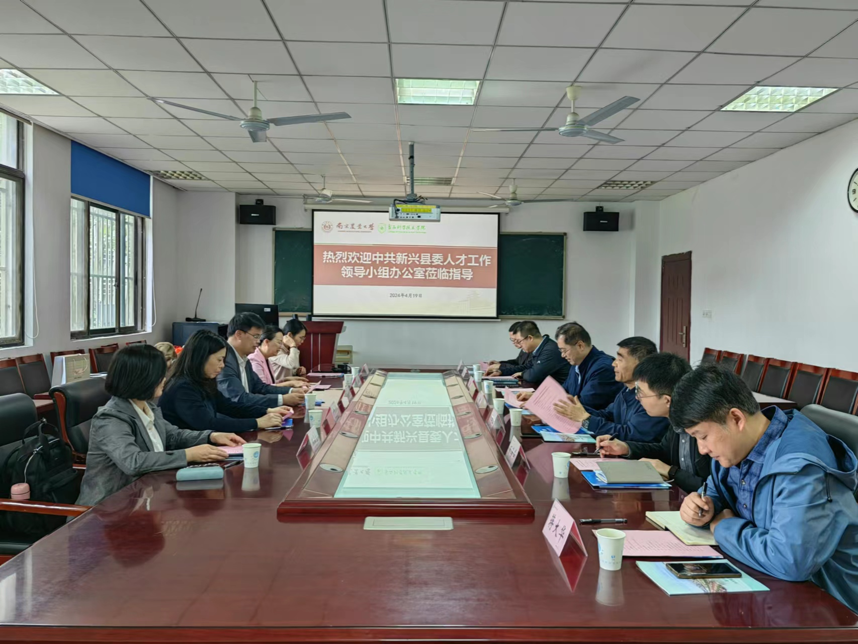 4月19日中共新兴县委组织部部务委员冯添旺一行来院调研。365best体育亚洲官网党委书记孙健、党委副书记狄传华、副院长李伟、副研究员韩敏义,校党委组织部干部科科长杨海峰、校学生工作处大学生就业指导与服务中心主任周建鹏、校社会合作处乡村振兴科科长蒋大华参加座谈。