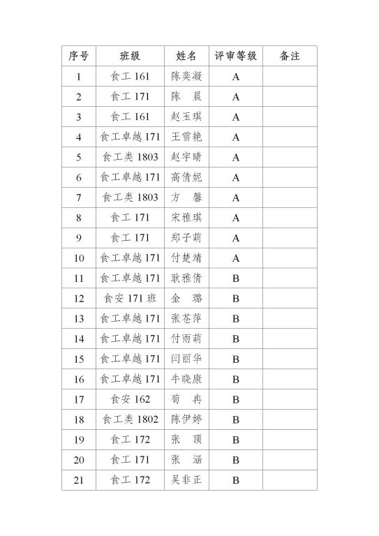 经个人自主申报,学院在综合考察申请者GPA和英语资格考试成绩的基础上,邀请专家教授面向申请者组织了集中选拔面试,从GPA、英语口语水平和综合素质能力三个方面对申请者进行综合评价,评审结果分为A、B、C三个等级。评审等级为A、B的同学为本次英国雷丁大学暑期访学交流项目拟推荐人选,资助事项另行通知。评审结果公示如下: