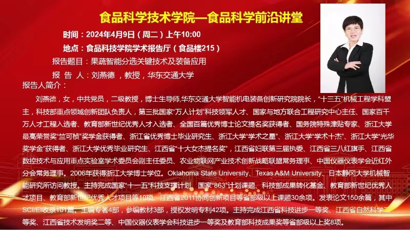 365best体育亚洲官网食品科学前沿讲堂(4月9日)