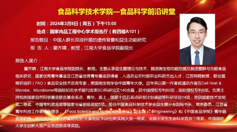 365best体育亚洲官网食品科学前沿讲堂(3月8日)