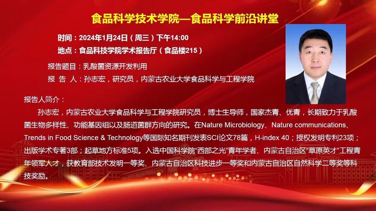 365best体育亚洲官网食品科学前沿讲堂(1月24日)