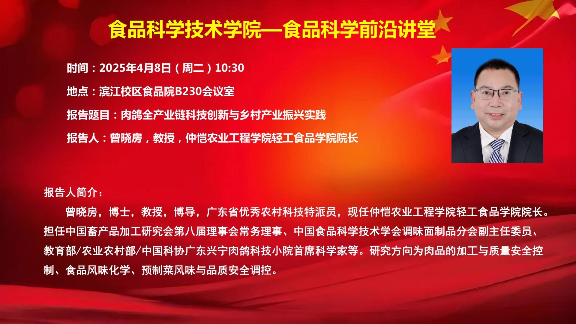 365best体育亚洲官网食品科学前沿讲堂(4月8日)