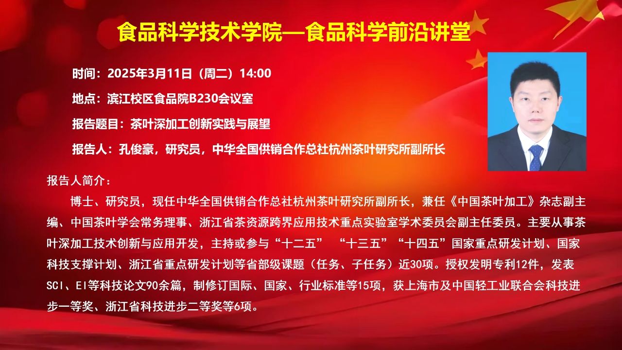 365best体育亚洲官网食品科学前沿讲堂(3月11日)