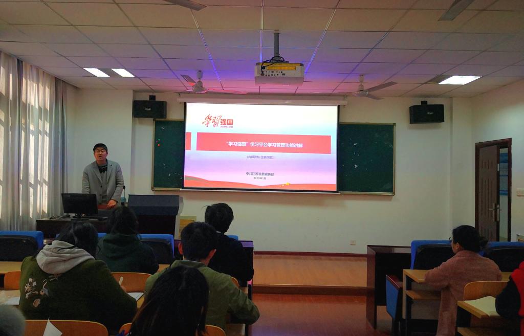 为贯彻落实“学习强国”APP的下载学习工作,陈宏强在会上结合《“学习强国”APP用户手册》,讲解了平台的功能和学习积分的方法;并结合校党委《关于做好“学习强国”学习平台推广使用工作的通知》,要求各位党支部书记要从讲政治、讲大局的高度,把做好学习平台推广应用工作作为加强思想理论武装的重要政治任务,全力做好平台在支部党员中的推广使用工作。