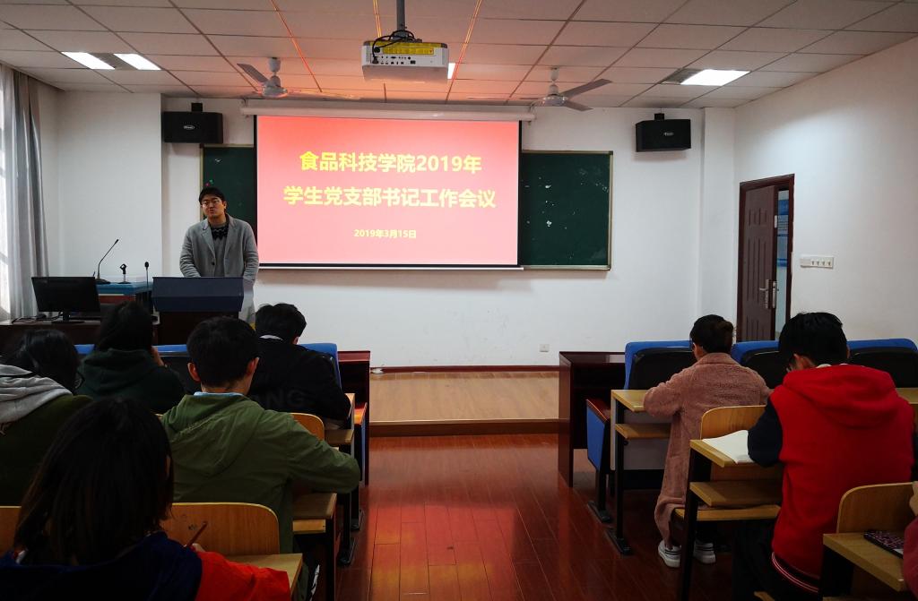 3月15日,365best体育亚洲官网新学期学生党支部书记工作会议在食品楼215报告厅举行。食品院党务秘书陈宏强主持会议,对新学期学生党务重点工作进行了部署,随后各学生党支部对品牌活动(简称“一部一品”)进行了项目中期汇报。学院14个学生党支部书记参加会议。