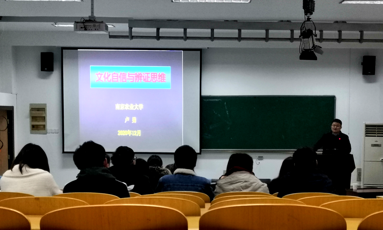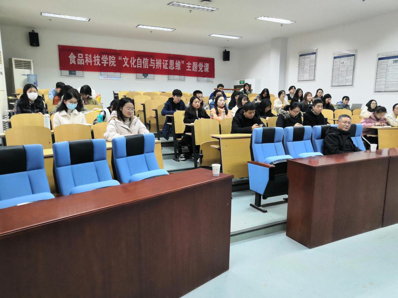 为了深入学习贯彻党的十九届五中全会精神,深入开展“四史”学习教育,引领学院广大学生党员牢固树立社会主义核心价值观,加强文化自信,12月9日下午,365best体育亚洲官网“文化自信与辩证思维”四史主题教育党课在肉品中心报告厅顺利举办。365best体育亚洲官网人文社科处副处长卢勇教授受邀开展报告。本次活动由食品院党委副书记邵士昌主持。