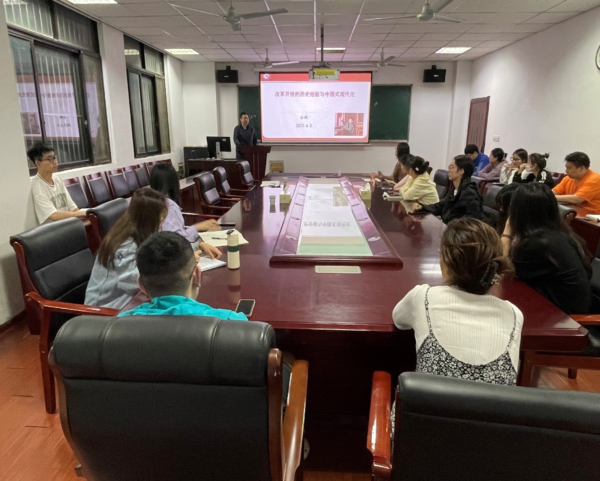 金鹏阐述了改革开放的历史经验与中国式现代化的关系,首先从改革开放的起步与展望、进入新阶段、进入新世纪、进入全面深化改革和提升对外开放水平四个阶段回顾了改革开放的历史进程,接着从改革开放的宏观经验和具体经验讲述了党带领人民取得的巨大成就,最后结合习近平新时代中国特色社会主义思想和党的二十大报告精神阐述了改革开放的未来发展前景。结合本次党课,金鹏提出研究生党员应明确自身的历史责任与使命,希望党员们通过专题党课进一步提高思想认识,明确入党动机,加深对党的认识。