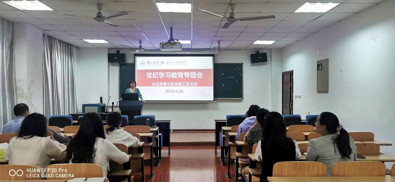 为深入贯彻落实习近平总书记关于党纪学习教育的重要讲话和重要指示精神,部署支部党纪学习教育工作,4月26日食安支部在学院215会议室召开了党纪学习教育专题支部大会,会议由支部书记赵立艳教授主持。会上,赵立艳传达了学校、学院关于深入开展党纪学习教育的实施方案,会议要求全体党员切实做到学纪、知纪、明纪、守纪,并扎实开展学习,营造全员参与、人人学习的浓厚氛围。