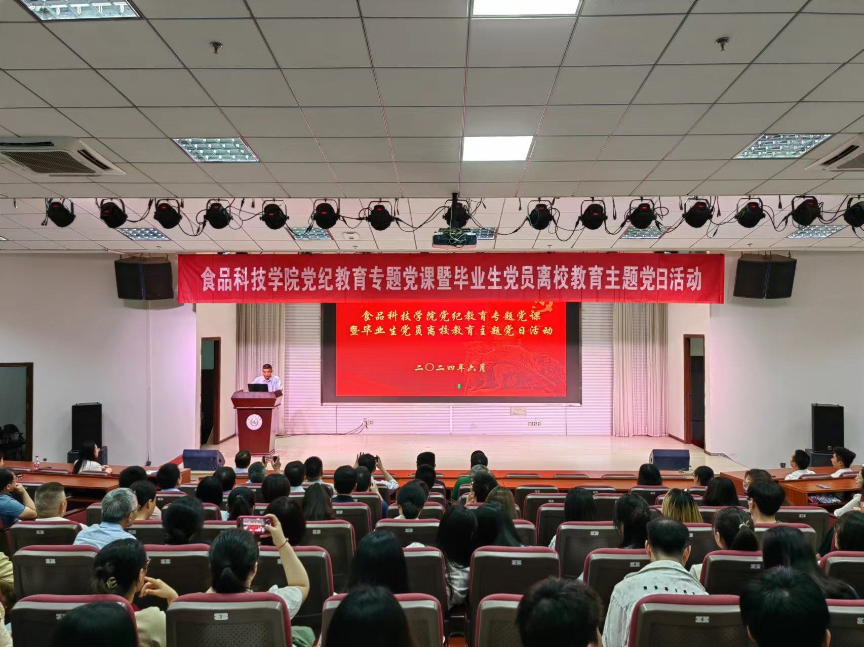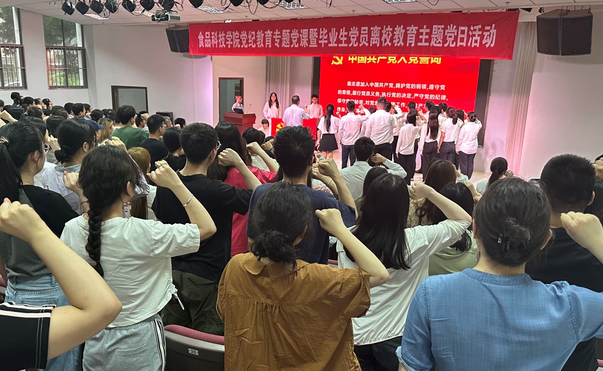 狄传华在主持讲话中强调,全体师生党员要以此次党日活动为契机,进一步提高站位,深入开展《条例》的学习,在学习贯彻《条例》上下功夫见真章出实效。全体师生党员、特别是毕业生党员始终牢记初心使命,立足本职岗位,发挥党员先锋模范作用,以实干笃定前行,以奋斗开创未来,赓续党的光荣传统和优良作风,为建设农业特色世界一流大学贡献食品力量。